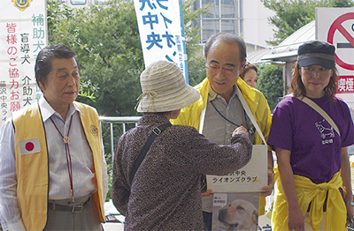 奉仕団体「藤沢湘南ライオンズクラブ(安藤忠男会長)」と「藤沢中央ライオンズ(相原聡会長)」が9月30日、盲導犬や介助犬、補助犬の育成支援を目的とした募金の呼びかけを市民まつりで行った。