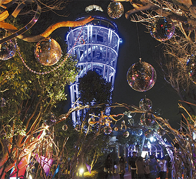 期間中は、約400個のミラーボールを使って、光と反射の空間作品を創りだす「MIRRORBOWLER光アート」を開催するほか、江の島シーキャンドル展望室では、メッセージボードの掲出も(午前9時から午後8時・事前申込制)。