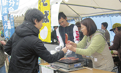 当日は、とん汁、地鶏焼き、いか焼きなど、おいし食べ物の屋台がズラリ。また、餅つきや景品が当たるダーツゲームなどの楽しい模擬店も並ぶなど、家族で楽しめるイベント。