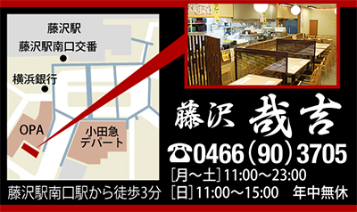 藤沢駅南口、OPA並びの第一相澤ビル地下1階にこのほど「藤沢 哉吉」がオープンした。逗子銀座通りで、TV番組でも紹介されるなど人気を博している「潮騒料理 哉吉」の姉妹店。地元産生しらすや金目鯛、本マグロなど本店の系譜をくむ新鮮な魚介料理や同店の看板メニューでもある本格稲庭うどんがお手頃な値段で楽しむことができる。料理一つひとつもさることながら、同店の魅力はそのメニューの豊富さ。天ぷらやとんかつ、フライといった定食メニューからもつ煮や唐揚げなどの居酒屋メニューまでおよそ70種類と充実の内容。お酒を飲まない人や子どもでも食事を楽しむことができる。明るく広々とした店内も家族連れには嬉しい。ランチでは丼ものに小鉢・ミニ刺身・お新香・味噌汁・デザート・コーヒーがつくセットメニューも(750円〜)。