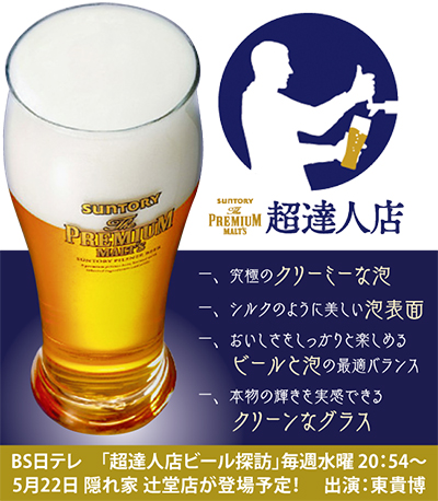 「超達人」は、プレモル「樽生」のおいしさと美しさに徹底的にこだわり、究極の状態で提供する店のこと。注ぎ方の技術はもちろん、ビールサーバーの徹底した管理やグラスの取り扱いなど、「クリーミーな泡」を追求することに対して厳しい基準をクリアすることが求められる。