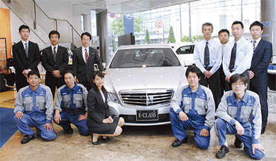 メルセデス・ベンツ正規販売店の同店は、新車ショールームが1階と2階にあり、コンパクトなスマートからゆったりサイズのSクラス、クーペやSUVなどベンツの全てのラインナップを提供してくれる。
