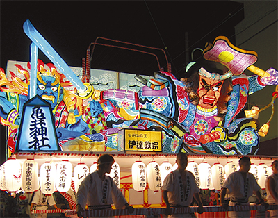 今回も本場青森から山車が登場。テーマは古代東北の若きリーダー「大墓公(たものきみ)阿弖流為(あてるい)」。阿弖流為は、奈良時代から平安時代にかけて、黄金を求めて侵攻する朝廷の大軍から陸奥の民を守るために遊撃戦を展開した東北守護の英雄として知られている。