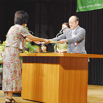青木会長は来賓に感謝の意を述べ「常に自覚、自信を持ち、未来を担う園児たちのために生きがいのある将来を共に築いていこうではありませんか」と会場の職員らに語りかけた。