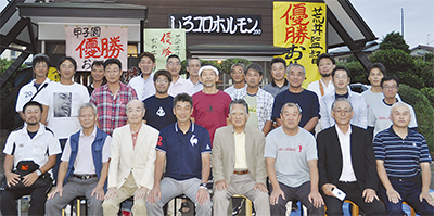 第95回全国高校野球選手権大会(甲子園)で、初出場初優勝を飾った前橋育英高校の監督・荒井直樹さん(49)の祝賀会が9月23日、長後の「辰起ホルモン」で開催された。