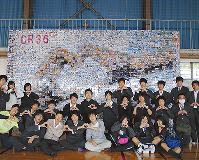 担任の川瀬教諭が2012年から撮りためた授業風景、学校行事、部活動の様子など5000枚以上の写真から、約2000枚を使用し、手でハートをかたどった作品を完成させた。