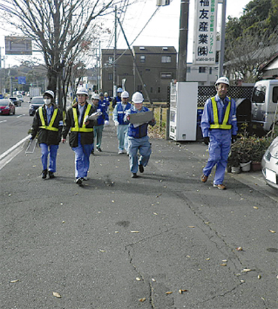 藤沢市管工事業協同組合と県企業庁藤沢水道営業所は12月6日、水道のライフラインの中で重要な役割を果たす主要送配水管の管路パトロール訓練を合同で実施した。この訓練は将来の発生が予想される大規模災害に備えて2003年に藤沢水道営業所と締結された「災害時における応急給水及び応急復旧工事等の協力に関する協定」に基づいて行われたもの。当日は組合から自主的ボランティアとして25人、藤沢水道営業所から15人が参加。
