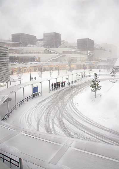 首都圏に記録的な大雪が降った2月8日、藤沢市でもまとまった雪が降り積もった。横浜地方気象台は、午前10時55分に県内全域に大雪警報を、藤沢市など沿岸15市町に暴風雪警報を発令した。