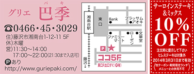 湘南台に店を構えて30余年―。遠方から足を運ぶファンも多い「グリエ巴季」は、百貨店などでも取り扱う高級黒毛和牛の中から店主自らが厳選した最高ランクの肉を味わえるステーキの名店。「いつも最高の味で提供できるよう、食べごろの見極めは妥協できない」という店主のこだわりが光る。