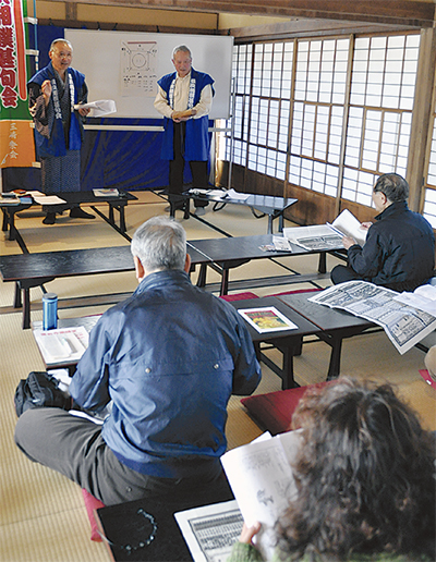 打戻にある盛岩寺(せいがんじ)の「昭和文化館」では3月8日、4月に開催される大相撲藤沢場所をもっと楽しんでもらおうとの中津川雅久住職の計らいで、相撲甚句の講座が開かれた。