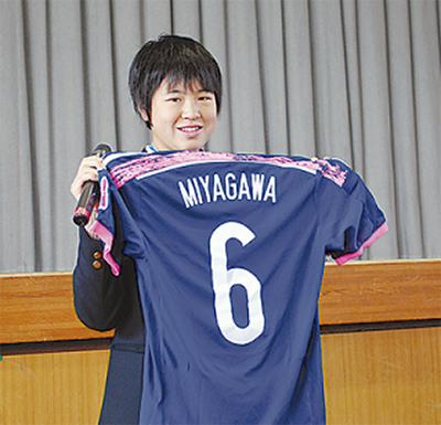 宮川選手はJリーグ「東京ヴェルディ」の女子チーム、「日テレ・ベレーザ」の中高生育成クラブ「メニーナ」に所属。粘り強い守備に加え、攻撃にも移れる技術と運動量が特長で、13年U-16海外遠征に参加するなど全国でも高い評価を受けている選手だ。