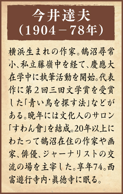 今井達夫著「鵠沼物語」は、晩年期の1970年8月頃から71年2月にかけて執筆された作品。大正・昭和時代、鵠沼に出入りした芥川龍之介や尾崎士郎、山本周五郎ら文化人との交流が原稿用紙500枚、16章に渡って綴られている。