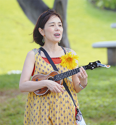 ウクレレのシンガー・ソングライター花村美歩さん(辻堂東海岸・42歳)が、5月24日にハワイで開かれた「第4回インターナショナル・ウクレレコンテスト」でMVP(最優秀賞)に輝いた。