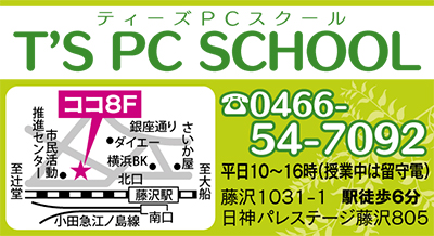 そんな「アイパッド」をゆっくり、丁寧に習いたいなら、藤沢駅北口徒歩6分の少人数女性限定教室「T’S PC SCHOOL」へ。