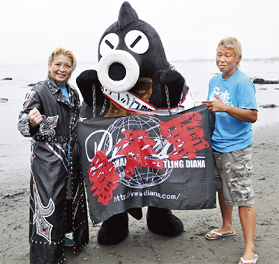 江の島を中心にごみ拾い活動を行うボランティア団体「海さくら」(古澤純一郎代表)は7月5日、女子プロレスラーの堀田祐美子さんと青野敬子さんをゲストに招き、約1時間にわたってともにビーチクリーンを行った。