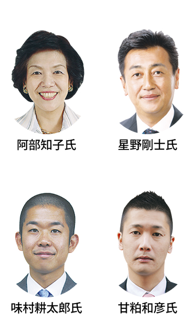 これまでに立候補の意思を表明しているのは、前職で自民党の星野剛士氏(51)、民主党公認となった阿部知子氏(66)、新人で次世代の党の甘粕和彦氏(31)、新人で共産党の味村耕太郎氏(25)。