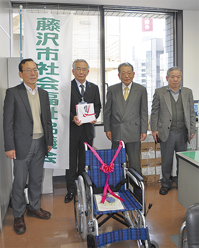 冷蔵庫メーカー「松下冷機」のOB会「パナソニック松友会」(西田和良会長)は12月9日、社会貢献活動の一環として藤沢市社会福祉協議会(加藤正美会長)に車いす1台を寄贈した。