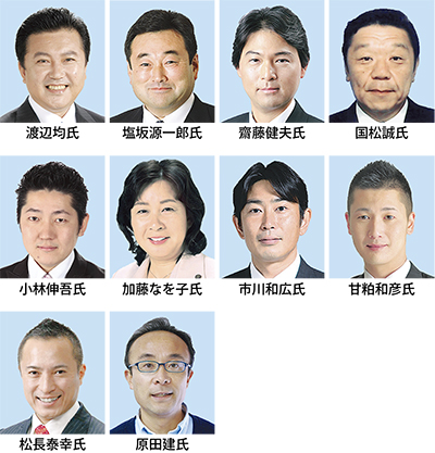 立候補を表明している現職は国松誠氏(53・自民党・2期)、齋藤健夫氏(46・民主党・3期)、塩坂源一郎氏(51・無所属・2期)、渡辺均氏(56・公明党・3期)の4氏。新人では2014年の衆院選にも出馬した甘粕和彦氏(32・次世代の党)、現市議会議員の市川和広氏(43・自民党)と加藤なを子氏(56・日本共産党)、小林伸吾氏(37・維新の党)、元市議会議員の原田建氏(50・無所属)、現市議会議員の松長泰幸氏(46・自民党)の6氏が名乗りをあげた。
