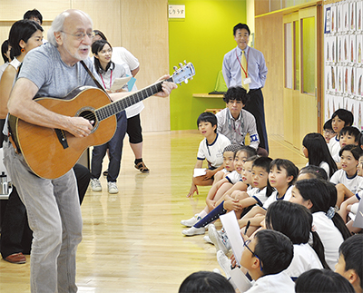 米国のフォークグループ「ピーター、ポール&マリー(PPM)」のピーター・ヤーロウ氏が5月28日、湘南学園小学校を訪問し、4年生にいじめ防止の授業『Don,t Laugh at Me(私を笑わないで)』を行った。