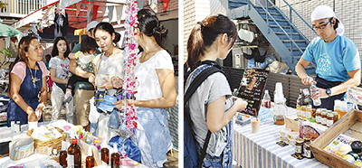 会場には辻堂を中心に、藤沢や茅ヶ崎の店主によるパンやはちみつ、カレーなどの飲食ワゴンから、生花や野菜、雑貨、アクセサリーを販売するテントが並ぶ。またビーチグラスやアロマを使ったワークショップなど、子どもから大人まで楽しめる催しも。「ここをきっかけに後日、店に足を運んでくれるケースも多い。それぞれの店のお客さんが、別の店の新たなお客さんになって好循環」と実行委員のメンバーら。また、来場者からも「こんなお店があったんだという発見が毎回ある」と評判も上々だ。