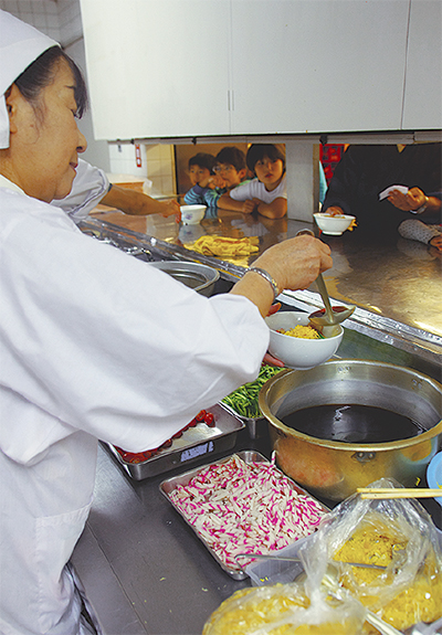 子どもたちがそばの味に親しむきっかけ作りとしてボランティアで行っているもので、同会に加盟する藤沢そば商組合(嶋田昌治組合長)のメンバー9人が厨房で作り手を担った。