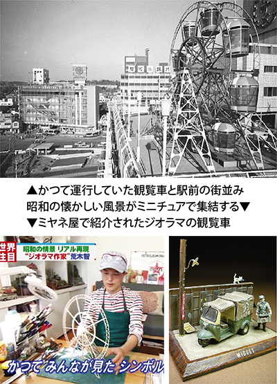 1965年の創業から短期間だけ運行され、駅前のシンボルとして親しまれたフジサワ名店ビルの「屋上観覧車」が、50周年を機にジオラマで復活!