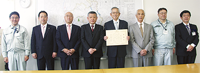 県藤沢土木事務所の杉山孝一所長は3月25日、同所内で、藤沢土木協同組合(浅岡和男理事長=人物風土記)に感謝状を贈呈した。