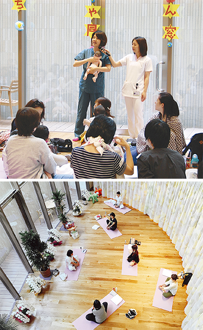 この日は産婦人科医が「わらべ歌ベビーマッサージ」とその効能などについて、人形を用いながら実演。「家族みんなで歌いながらやってみましょう」と呼びかけた。参加者からは「同じような月齢の子どもを持つ人と近況や今の悩みなどを話せたこともうれしい。マッサージは今日から早速やってみたい」といった声が聞かれるなど、出産後の育児についてもサポート体制を築いている。