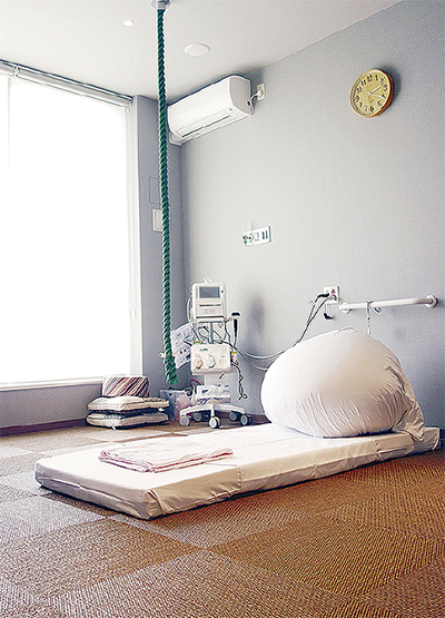 また3つある分娩室のうち、2つには床に「ボロン」と呼ばれる畳のような素材が敷かれており、出産時に妊婦が楽な姿勢をとれるようになっているほか、室内にはクッションを備えたトイレも設置されている。