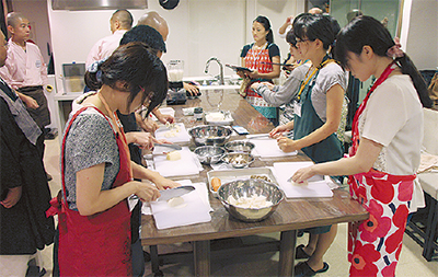 初回は講師の実演を見ながら精進料理を初歩から学び、実演後には出来立ての料理をお膳で味わうことができる(調理体験は2回目以降)。