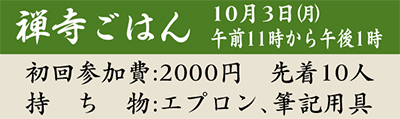 講師には各地で精進料理の魅力を広めている、全国曹洞宗青年会の松本好寛さんを招く。興味がある方は慈眼寺寺務所へ電話で申し込みを。この料理教室は2〜3カ月に一度の期間で定期的に開催される予定。
