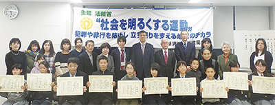 「藤沢地区社会を明るくする運動〜犯罪や非行を防止し、立ち直りを支える地域のチカラ〜」と題した作文コンテストの表彰式が12月13日、藤沢商工会館で開かれた=写真。