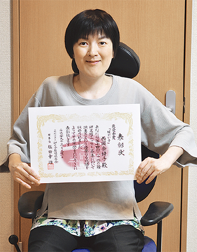 鵠沼神明在住の会社員・西岡奈緒子さん(36)の作品『暖かい手』が、作家・壺井栄を顕彰する「二十四の瞳岬文壇エッセー」の最優秀賞に輝いた。生まれつき筋ジストロフィーという病気を抱える西岡さんは、中学時代の経験を書き下ろした。