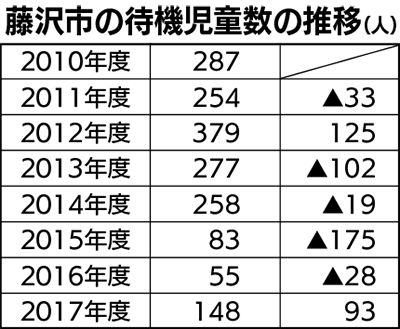 厚生労働省による待機児童の定義見直しにより、藤沢市の保育所に入りたくても入れない待機児童の数は、昨年と比べ93人増え148人となった。市が6月12日の定例会子ども文教常任委員会で報告した。