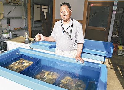 同組合の葉山一郎組合長は「この辺りは良質な砂地と餌が豊富で、おいしいハマグリが育つ。ナガラミにとっても良い環境。たくさんの人に味わってほしい」と期待を寄せた。
