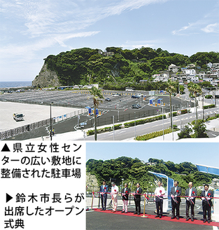 江の島の県立かながわ女性センター跡地に整備されていた「江の島かもめ駐車場」が7月21日、オープンした。運営する湘南なぎさパークは、「江の島の渋滞緩和に役立ち、観光の手助けになれば」と期待する。