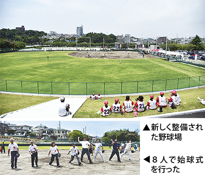 始球式は来賓8人が務め、野球とソフトボールを投げた。続く記念試合では、藤沢選抜チームと藤沢・鎌倉ガールズによる野球の試合と、六会中と滝の沢中によるソフトボールの試合が行われた。選手たちは新しいグランドで笑顔で溌剌とプレーしていた。