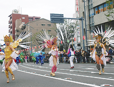 メーンとなるパレードは東口大通りが午前11時10分、西口大通りは午後1時15分からスタート。第36回浅草サンバ優勝の「G.R.E.S.仲見世バルバロス」をはじめ、「エスコーラ・ヂ・サンバ・サウーヂ」、学生サンバ連合「ウニアン・ドス・アマドーリス」が沿道を沸かせる。このほか、エイサー、鼓笛隊、チアリーディングや阿波踊りなど700人以上が東西大通りを練り歩く。