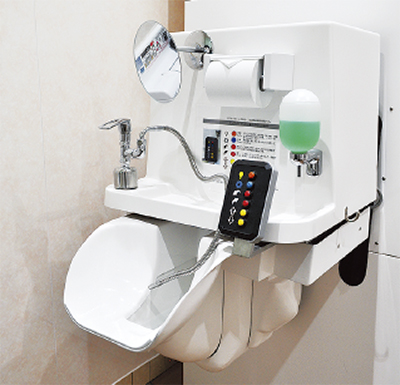 静岡県浜松市のエムズジャパン(株)が、これらの問題を3年がかりで改善し、最新版を開発。同駅に設置されたトイレは、上下前後に動くことで車椅子利用者も膝が当たることなく、1人で排泄が可能になった。今回、トイレ全体の老朽化に伴い、藤沢市は日本オストミー協会神奈川支部と意見交換を重ね、同トイレの設置に至った。