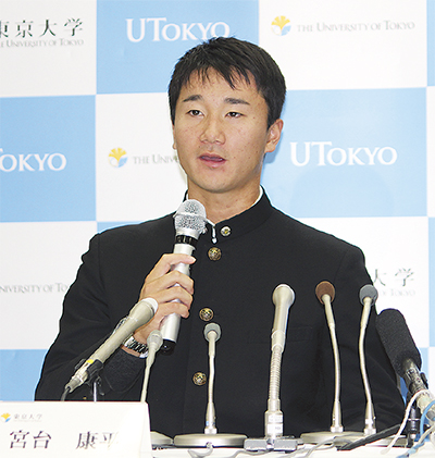 宮台投手は、最速150キロの直球を武器にする左の本格派で東京六大学野球に38試合登板した。昨年4月の春季リーグでは、早大戦で13奪三振と、70年ぶりに東大記録を更新し、今秋の東京六大学秋季リーグでは15年ぶりの勝ち点獲得に貢献した。通算6勝13敗。3年夏には東大から2人目となる日米大学野球の日本代表に選ばれた。