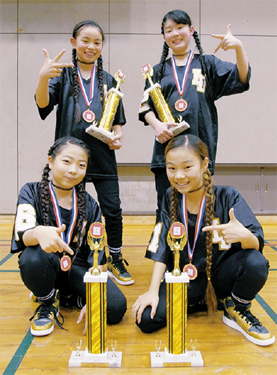 善行公民館で活動するダブルダッチサークル「藤一」内の4人チーム「リトルダイナマイト」が昨年12月3日、米国で開かれた国際大会「ナショナルダブルダッチリーグホリデークラシック」へ日本代表として出場し、「NOVICE部門」で優勝を飾った。同部門での優勝は「藤一」としても初めてのこと。