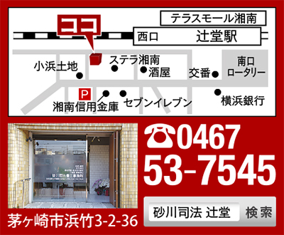 高齢化社会と共に年々増え続ける、相続や遺言に関する問題。「『私にはまだ関係ない』と思い込んでいませんか。差し迫ってからでは遅すぎます」。辻堂駅西口すぐの「砂川司法書士事務所」、砂川知明代表はこう呼びかける。