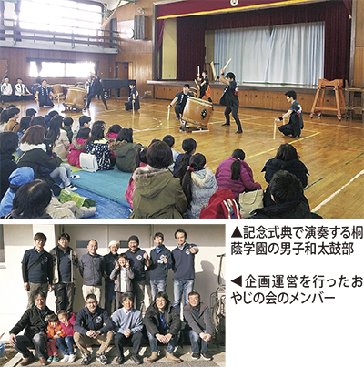 周年式典の企画は、学校では大きな行事を行わないということになり、「おやじの会が主催してやろう」と昨夏から会議を重ねてきた。当初は、和太鼓の演奏のみを予定していたが、「寒いから温かい食べ物を出そう」「正月も近いし昔ながらの遊びも」と会員からアイデアが出てきたという。