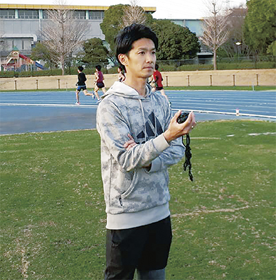同陸上部には現在17人の選手が所属。下里さんは、選手一人ひとりの1カ月ごとの目標を定め、練習メニューを組み立てる。選手個々に実力差があるため、練習はスピードや持久力などの3、4のグループに分けて行う。まだ慣れず、時には眠れずに練習メニューを考えることもあるという。
