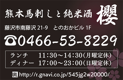 櫻では、震災からちょうど2年になる4月にランチ営業を開始する。「少しでも多くの人に熊本のおいしい馬肉を食べていただいて、お客様にも生産者様にも笑顔になって欲しい」とオーナーの櫻井さん。割と高価なイメージがある馬肉もランチなので手ごろな値段で提供できるように努力したという。