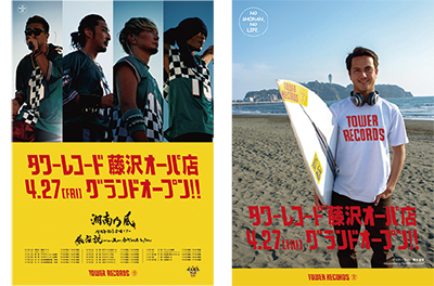オープン記念として、藤沢にゆかりのあるレゲエ・ユニット「湘南乃風」や、茅ヶ崎出身のプロサーファー笹子夏輝さんのコラボ・ポスターを掲示。また、葉山のビーチサンダル「げんべい」とのコラボ商品を数量限定で販売する。そのほか、ポイント施策やオープニング・キャンペーンを展開し、タワレコ復活を盛り上げていくという。