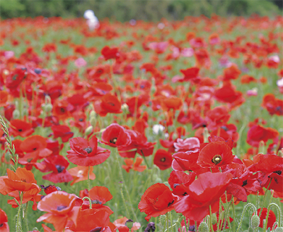 ポピーが一面に咲き誇る