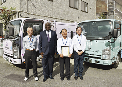 大使は同社の前に藤沢市役所も訪れ、市が昨年寄贈した消防車5台と救急車1台に対して同様の感謝状を贈っている。大使は「この2月、3月に首都コナクリで火災があり、いただいた消防車が早速役に立っていた」と話していた。