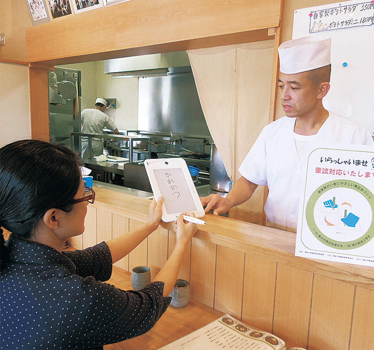 (一社)藤沢市商店会連合会に加盟する6商店会は、聴覚障害者が買い物しやすい環境を作ろうと、筆談器具と対応店のステッカーを9月から導入している。