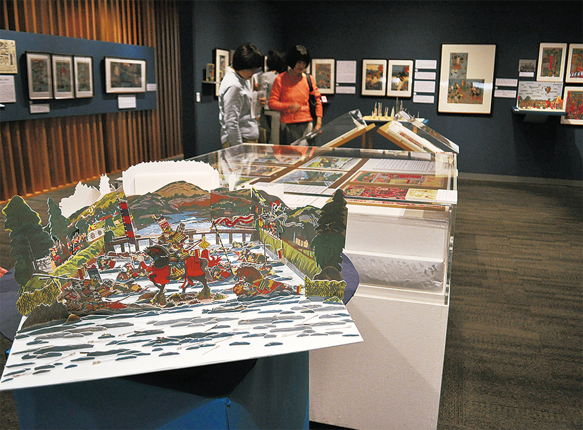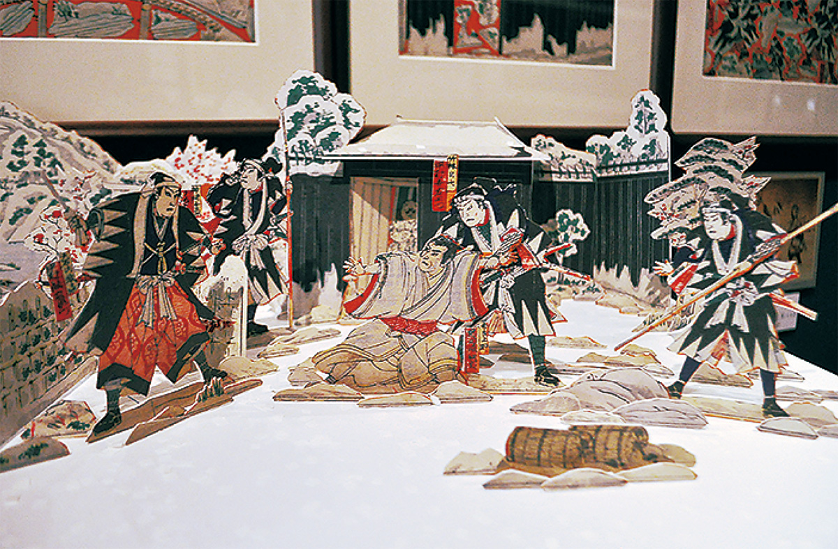 浮世絵を切り抜き、登場人物や風景を模型のように組み立てる「組上燈籠(くみあげどうろう)」に焦点を当てた企画展が、辻堂神台の藤澤浮世絵館で始まった。「歌舞伎組上燈籠の世界」と題し、平面で残された実物を複製して組み上げた作品などを通じて、浮世絵の世界を掘り下げている。